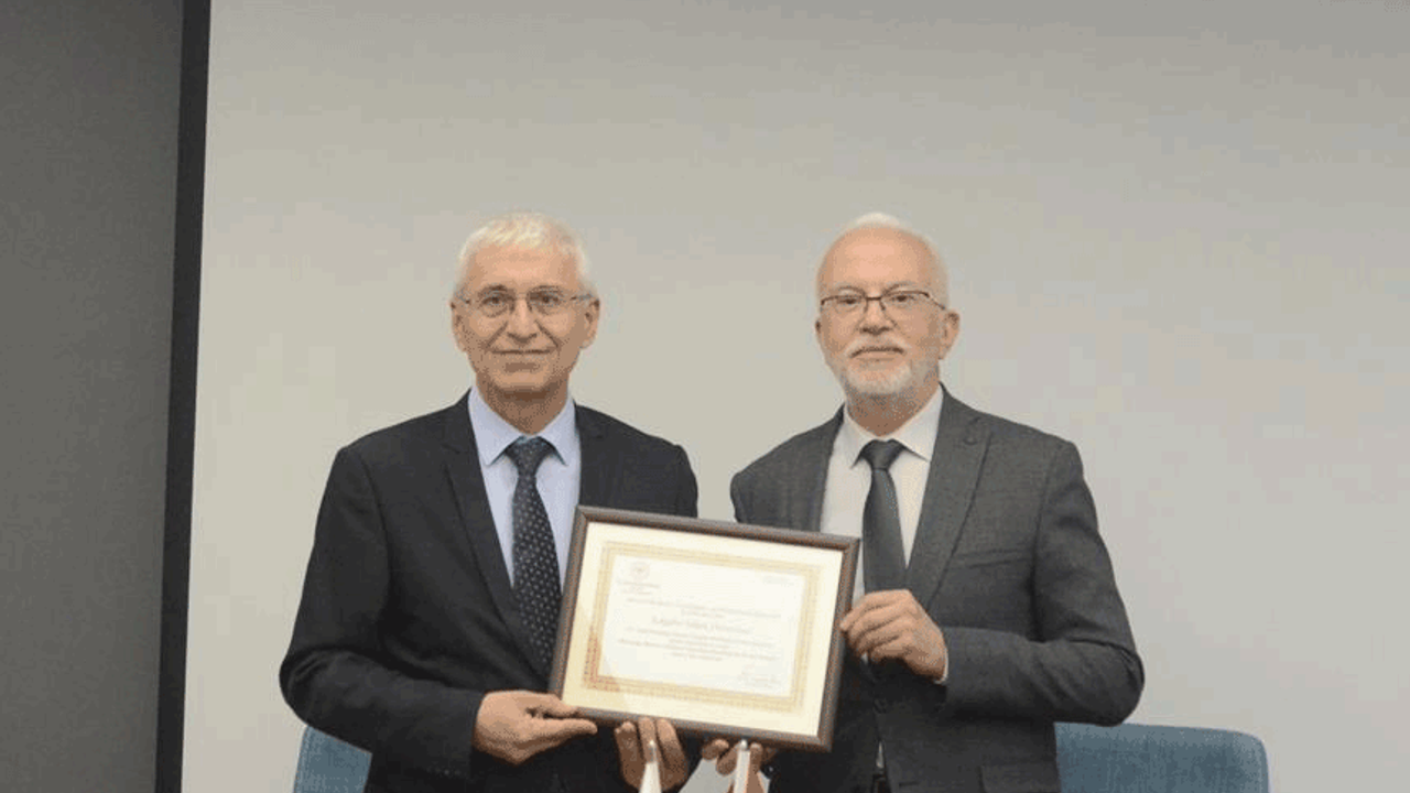 İl Sağlık Müdürü Doç. Dr. Yaşar Bildirici, Eskişehir Teknik Üniversitesi Rektörü Prof. Dr. Adnan Özcan’a “Beslenme Dostu ve Fiziksel Aktiviteyi Destekleyen İşyeri” belgesini takdim etti.