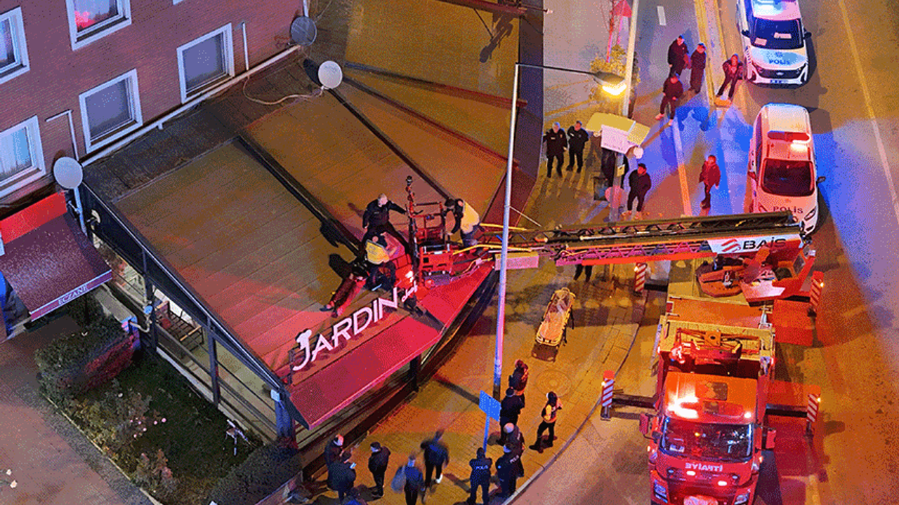 Eskişehir’de 8 katlı bir apartın 2’nci katından binanın altındaki kafenin tentesine düşen alkollü olduğu iddia edilen yaralı şahıs merdiven uzatılan itfaiye tarafından aşağıya indirilerek hastaneye kaldırıldı.