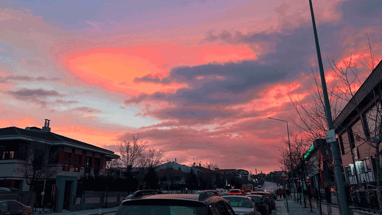 Akşam saatlerinde dışarıda bulunan vatandaşlar, renk cümbüşünün oluştuğu gökyüzünü cep telefonlarıyla kaydederek anın tadını çıkardı.