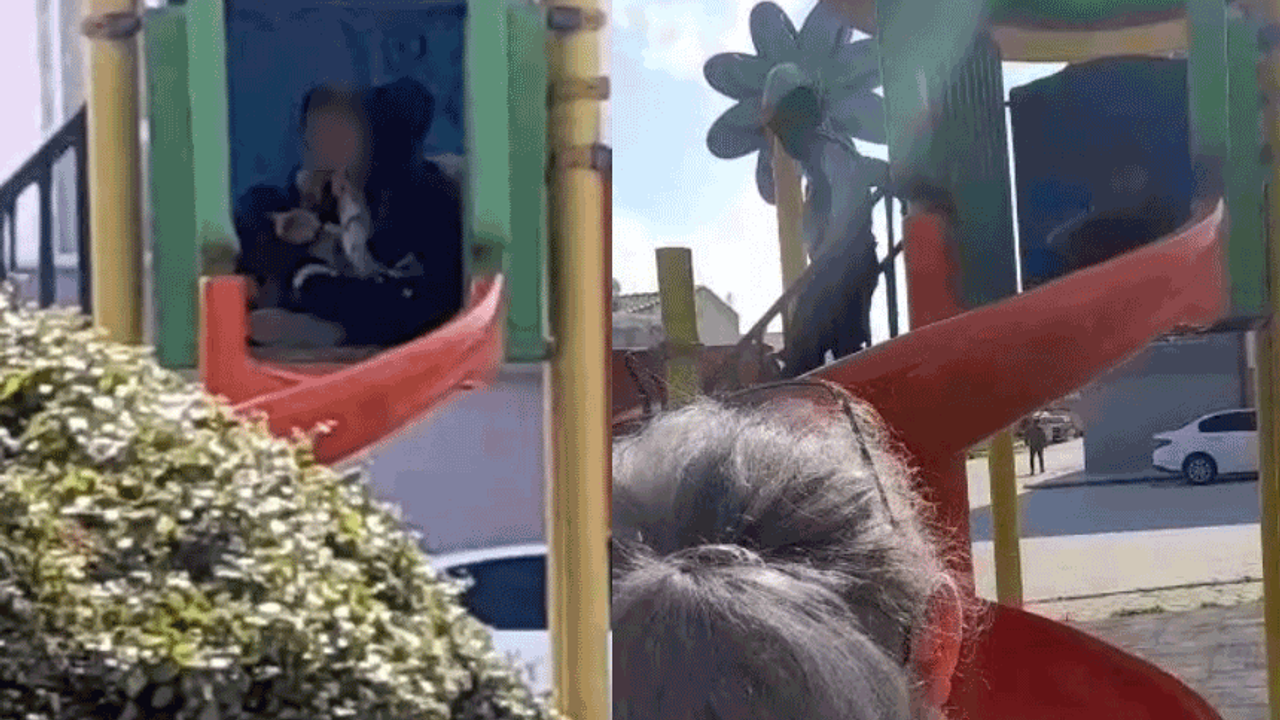 Olay, Yeşiltepe Muhtarlığının önündeki parkta meydana geldi. 2 çocuk, parkın içerisindeki kaydırağın gövdesine oturarak sigara içti. Durumu fark eden Yeşiltepe Muhtarı Meryem Kuş Açıkgöz, çocukların yanına giderek, "Ne yapıyorsunuz siz" diye sordu. Panik yaşayan çocuklar ise kaydıraktan aşağıya indi. Çocuklardan biri muhtarın, "Kaç yaşındasınız siz" sorusuna, "18" diyerek cevap verdi. Koşarak uzaklaşan çocuklar cep telefonu kamerası ile kayıt altına alındı.