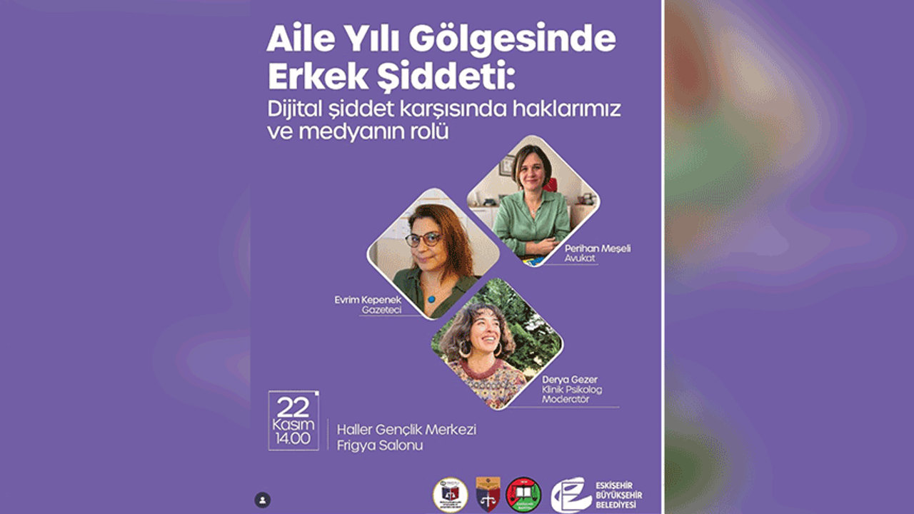 “Aile Yılı Gölgesinde Erkek Şiddeti: Dijital Şiddet Karşısında Haklarımız ve Medyanın Rolü” başlıklı panel, 22 Kasım Cumartesi günü saat 14.00’te Haller Gençlik Merkezi Frigya Salonu’nda gerçekleştirilecek.