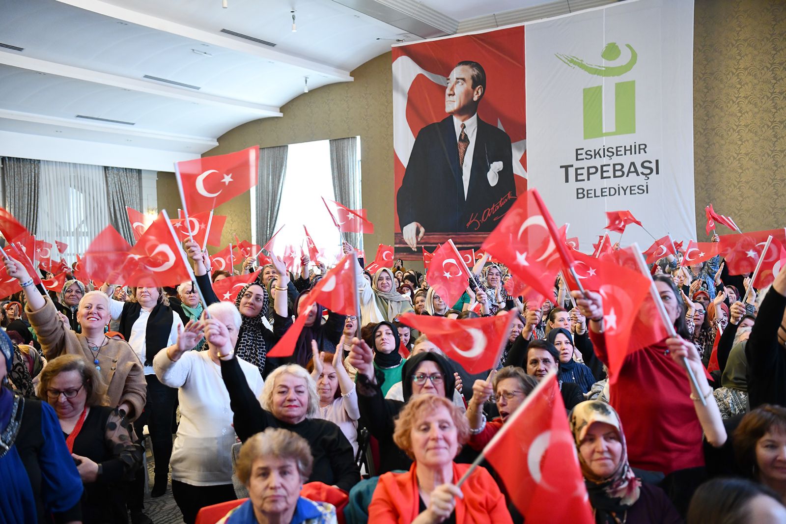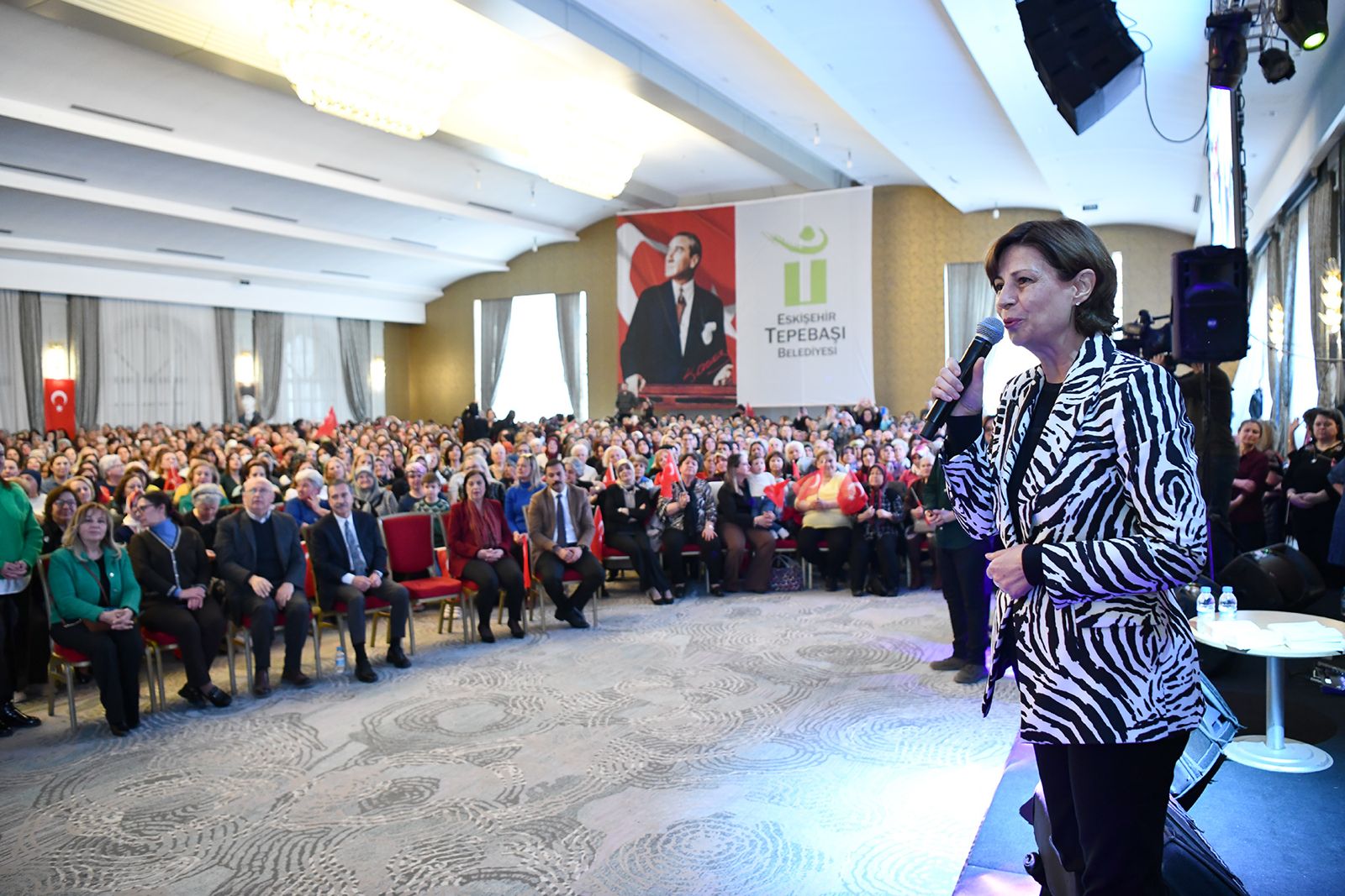 Buluşmada kadınlara seslenen Tepebaşı Belediye Başkanı Dt. Ahmet Ataç, “Öncelikle gününüz hayırlı olsun ama ben size 1 gün değil 365 gün vaat ediyorum. Düşündük sizleri nasıl mutlu edebiliriz? Hangi sanatçıyla mutlu edebiliriz? En sonunda Gülden Karaböcek’i uygun gördük. Kendisini yaklaşık 1967’den beri takip ederim. Gerçekten bir hanımefendi, bir sanatçı, bir usta. Onun şarkılarıyla bugün çok güzel bir gün geçireceğiz. Sizlerle her zaman günlerimiz güzel geçiyor. Bundan sonra da yine günlerimiz iyi olacak. Atatürk ‘Kadınlar yerde sürünmeye değil, omuzlar üzerinde göklere yükselmeye layıksın’ diyor. Esasında Cumhuriyet bir kadın devrimidir. Mesela 1934’te kadınlara seçme seçilme yasasını çıkarıyor. Bugün dünyanın en medeni, en zengin kenti olan İsviçre 1970’te çıkarıyor. Bakın Atatürk'ün vizyonu nasıl vizyon. Atatürk'e laf söyleyenler Allah aşkına ellerini vicdanlarına koysunlar öyle laf söylesinler. Gerçeği görmezden gelenler inanın çarpılır. Değerli kadınlarımız burada öyle güzel bir manzara var ki inanın vallahi doyamıyorum. Yolumuz açık olsun” dedi.