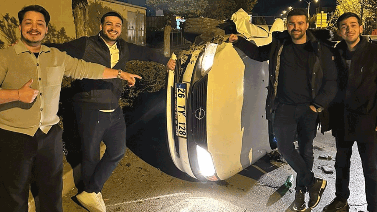 Eskişehir'de bir süre önce yaşanan bir kaza ardından yaşanan ilginç anlar dikkat çekti. Büyükdere Mahallesi Atatürk Bulvarı üzerinde meydana gelen kazada, 26 TY 128 plakalı otomobil sürücüsünün direksiyon hakimiyetini kaybetmesi sonucu araç yan yattı. İddiaya göre sürücünün olay yerinden ayrıldığı kazanın ardından bir arkadaş grubu, kaza mahalline geldi. Arkadaş grubu içinde kimsenin bulunmadığı yan yatmış araçla hatıra fotoğrafı çekildi.