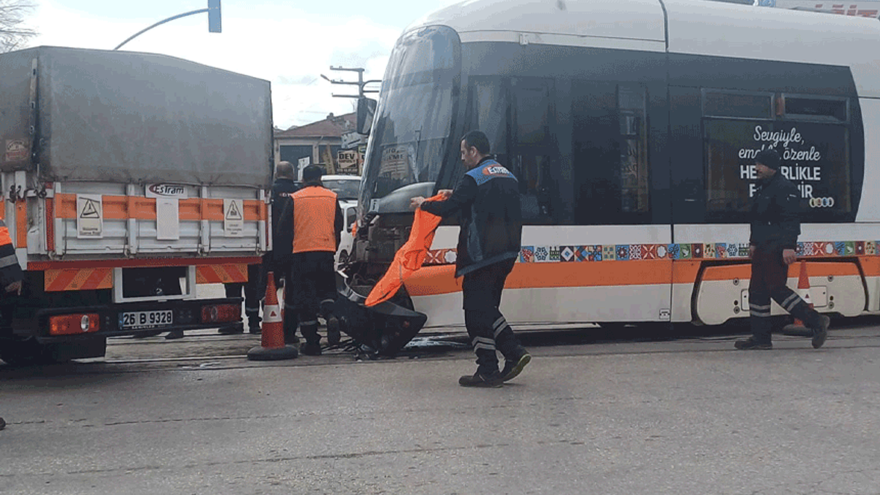 ESTRAM’ın açıklamasında “Yenidoğan tramvay durağı sonrası karayolu araç kazası nedeniyle tramvay raydan çıkmıştır. Bu nedenle Şehir Hastanesi-Kumlubel, 75. Yıl-OGÜ hatlarında tramvay işletimi yapılamamaktadır.