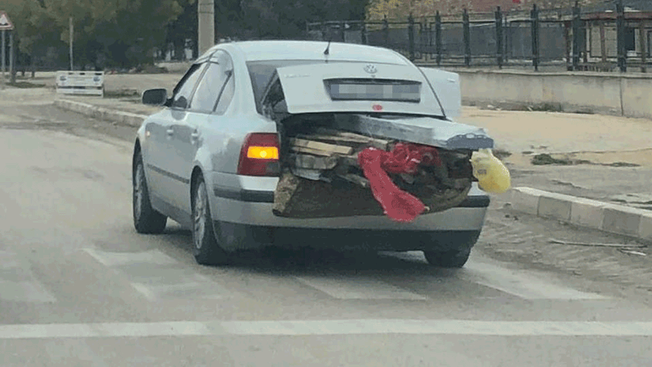 Alpu ilçesi Mihalıççık caddesi üzerinde seyreden sedan otomobilin bagajına yüklenen kereste ve inşaat malzemeleri dikkat çekti. Malzemelerin ağırlığından dolayı aracın arka bölümünde çökme yaşanırken, bagajdan dışarı taşan yük ise trafikteki diğer araçları tehlikeye attı. Otomobilin cadde üzerinde bu şekilde seyrettiği gözlemlendi.