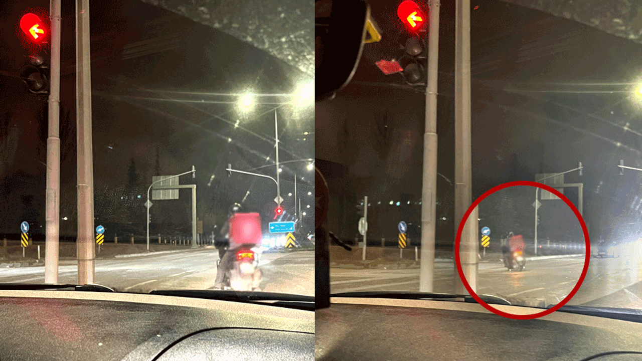 Eskişehir-Kütahya yolu üzerinde dün akşam saatlerinde trafik güvenliğini tehlikeye atan bir olay meydana geldi. Bayram yoğunluğununda etkili olduğu trafikte bir motosikletli kurye, kırmızı ışık ihlali yaparak kavşaktan geçti.