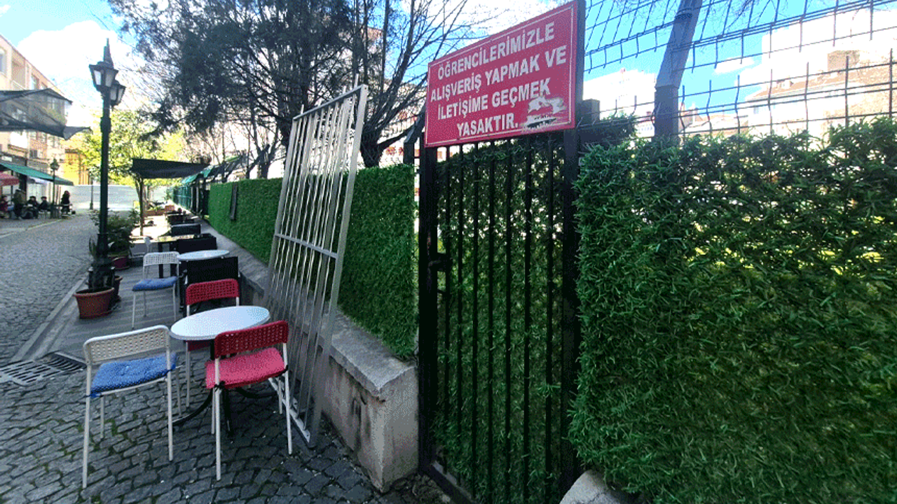 Hacı Süleyman Çakır Kız Anadolu Lisesi'nin dış cephesindeki tel örgülere asılan kırmızı zeminli tabela, üzerindeki sert ifadelerle görenleri şaşırttı. Tabela üzerinde yer alan "Öğrencilerimizle alışveriş yapmak ve iletişime geçmek yasaktır" yazısı, çevredeki vatandaşlar tarafından merak konusu oldu.