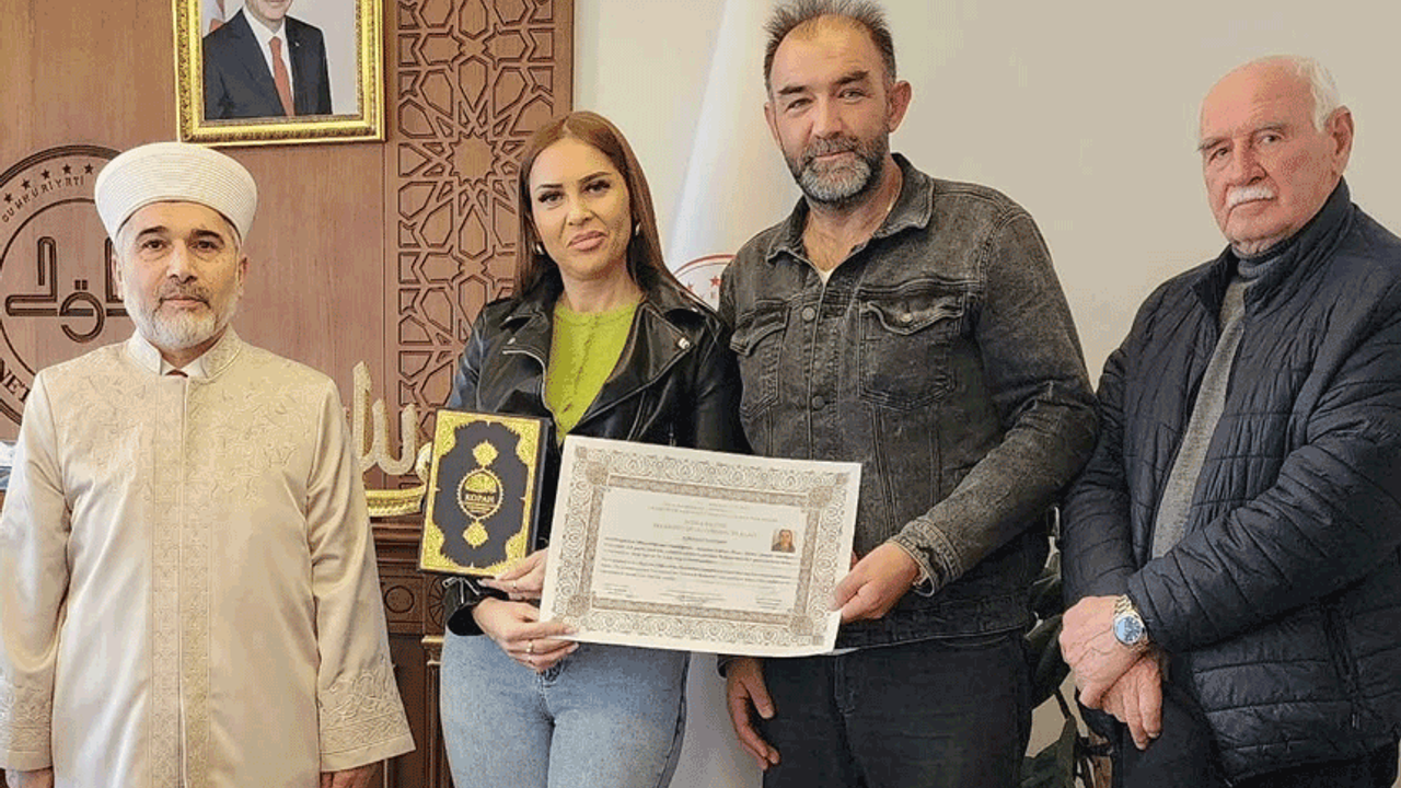 Programın sonunda İl Müftüsü Muharrem Gül tarafından Aleyna’ya İhtida Belgesi takdim edilerek Rusça Kur’an-ı Kerim meali ve çeşitli dini yayınlar hediye edildi. Merasim yapılan dua ile sona erdi.