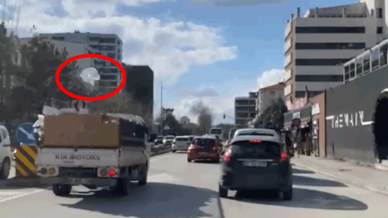 Eskişehir’de İsmet İnönü 1 Caddesi üzerinde ilerleyen bir ticari aracın kasasında bulunan geri dönüşüm atıkları, yeterince sabitlenmeyince yola saçıldı. Poşet ve kolilerin yola savrulduğu anlar trafikte ilerleyen sürücüler açısından tehlike oluşturdu. Yola düşen atıklar olası kazalara davetiye çıkarırken, aracın yükünü kontrol etmeden ilerlemesi dikkat çekti. Yaşanan durum, yük taşımalarında gerekli önlemlerin alınmasının önemini bir kez daha ortaya koydu.
