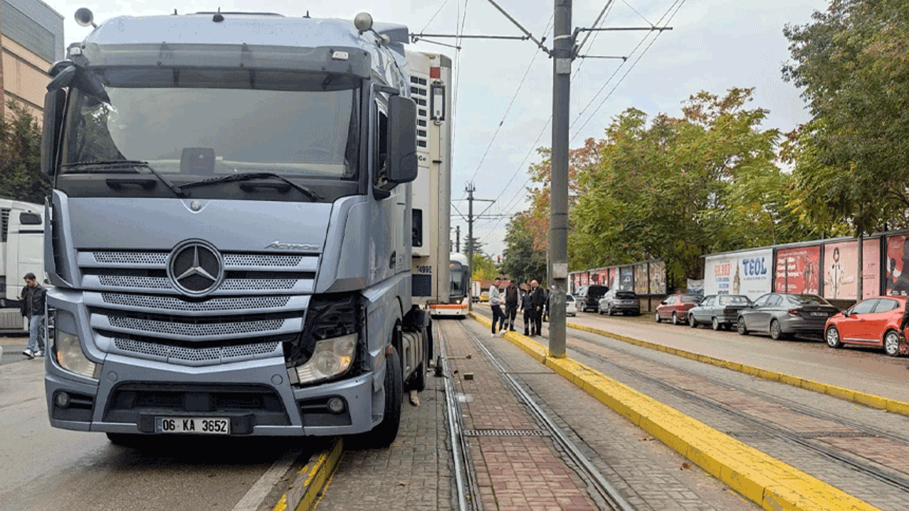 Olay, saat 09.00 sıralarında Fabrikacılar Caddesi üzerinde meydana geldi. Edinilen bilgilere göre; 06 KA 3652 plakalı tır, sürücüsünün direksiyon hakimiyetini kaybetmesi sonucunda tramvay yoluna girdi. Rayların kenarındaki taşlara takılan tır sebebiyle OTOGAR-SSK / OGÜ-SSK hatlarında tramvay seferleri yapılamazken, diğer karayolu araçları da ilerleyemedi. İhbar üzerine olay yerine polis ve ESTRAM ekipleri sevk edildi. Tırın bulunduğu yerden çekilmesi için çalışma başlatıldı. Ekiplerin gerekli müdahaleyi yapmasının ardından seferler normale döndü.