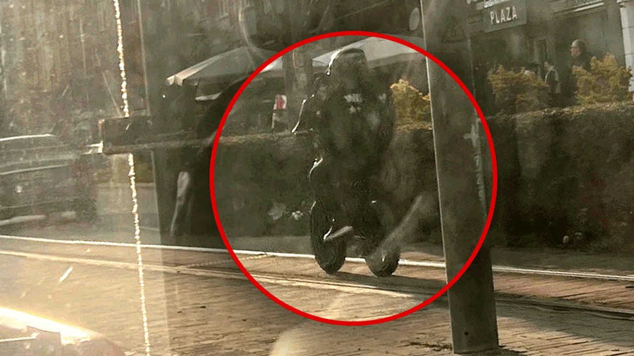Eskişehir Cumhuriyet Bulvarı’nda bir kişi, Gökmeydan tramvay yolunda elektrikli bisikletle seyahat ederken görüntülendi.