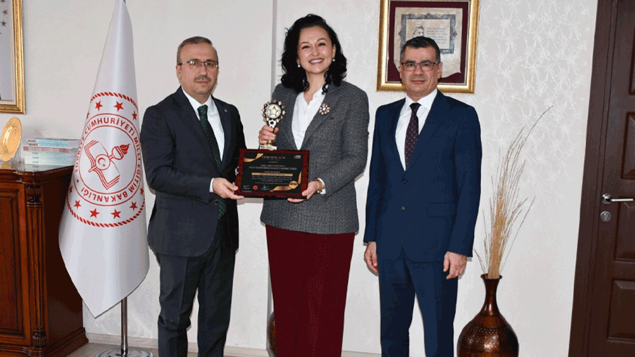 Eskişehir’de görev yapan bir öğretmen, uluslararası alanda elde ettiği başarıyla kentin eğitimdeki gücünü bir kez daha ortaya koydu. Avukat Mail Büyükerman İlkokulu’nda sınıf öğretmeni olarak görev yapan Seda Gökmen, Dubai’de düzenlenen 2026 AKS Global Education Platformu tarafından “2026 Yılının Yenilikçi Öğretmeni” ödülüne layık görüldü. Yenilikçi öğretim yöntemleri, öğrencileri öğrenme sürecine aktif biçimde dâhil eden yaklaşımı ve eğitimde oluşturduğu olumlu etkiyle jüri üyelerinin takdirini kazanan Gökmen, Eskişehir İl Millî Eğitim Müdürü Sinan Aydın tarafından makamında kabul edildi. Ziyarette, Okul Müdürü Ramazan Koçer de yer alırken, İl Müdürü Aydın başarılı öğretmeni tebrik ederek eğitim yolculuğunda başarılarının devamını diledi.