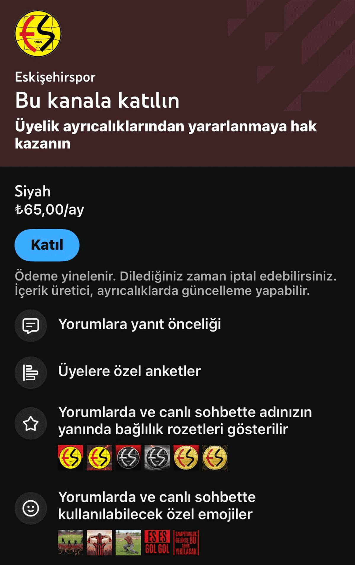 Katıl sisteminde mobil kullanıcılar için 65 TL ve 100 TL, web üzerinden ise 50 TL ve 75 TL olmak üzere iki farklı üyelik seçeneği sunuluyor. Üyeler, bu sistem aracılığıyla kulüp tarafından paylaşılan soyunma odası görüntüleri, maç öncesi motivasyon anları ve kulüp içinden özel videolar gibi içeriklere erişim sağlayabiliyor.
