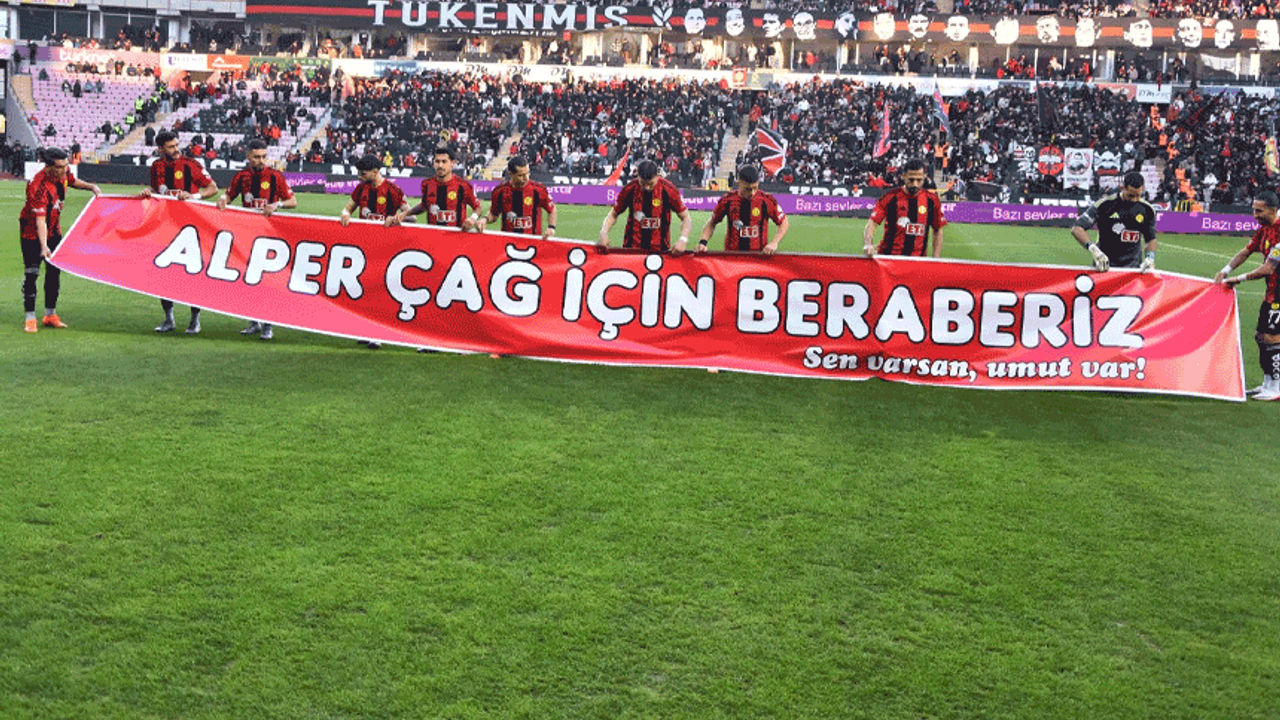 Balıkesirspor karşılaşmasına “Alper Çağ için beraberiz” yazılı pankartla çıkan Eskişehirsporlu futbolcular, tribünlerden ve kamuoyundan destek istedi.