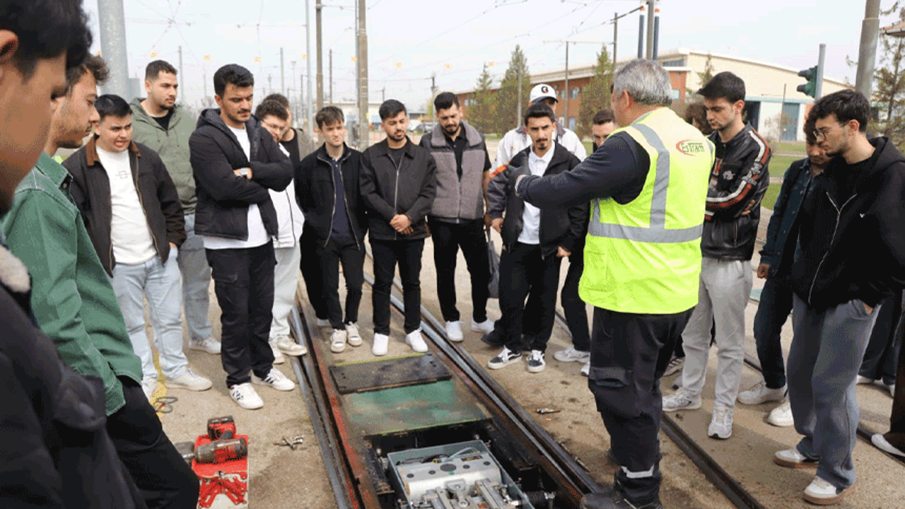 Program kapsamında öğrencilere, ESTRAM’ın kurumsal yapısı, işletme modeli ve günlük operasyon süreçleri hakkında kapsamlı bilgiler aktarıldı. Raylı sistemlerin perde arkasını keşfetme imkânı bulan katılımcılar; tramvay bakım atölyesi, trafik kontrol merkezi ve trafo merkezlerinde incelemelerde bulunarak sistemin işleyişini yerinde gözlemledi.