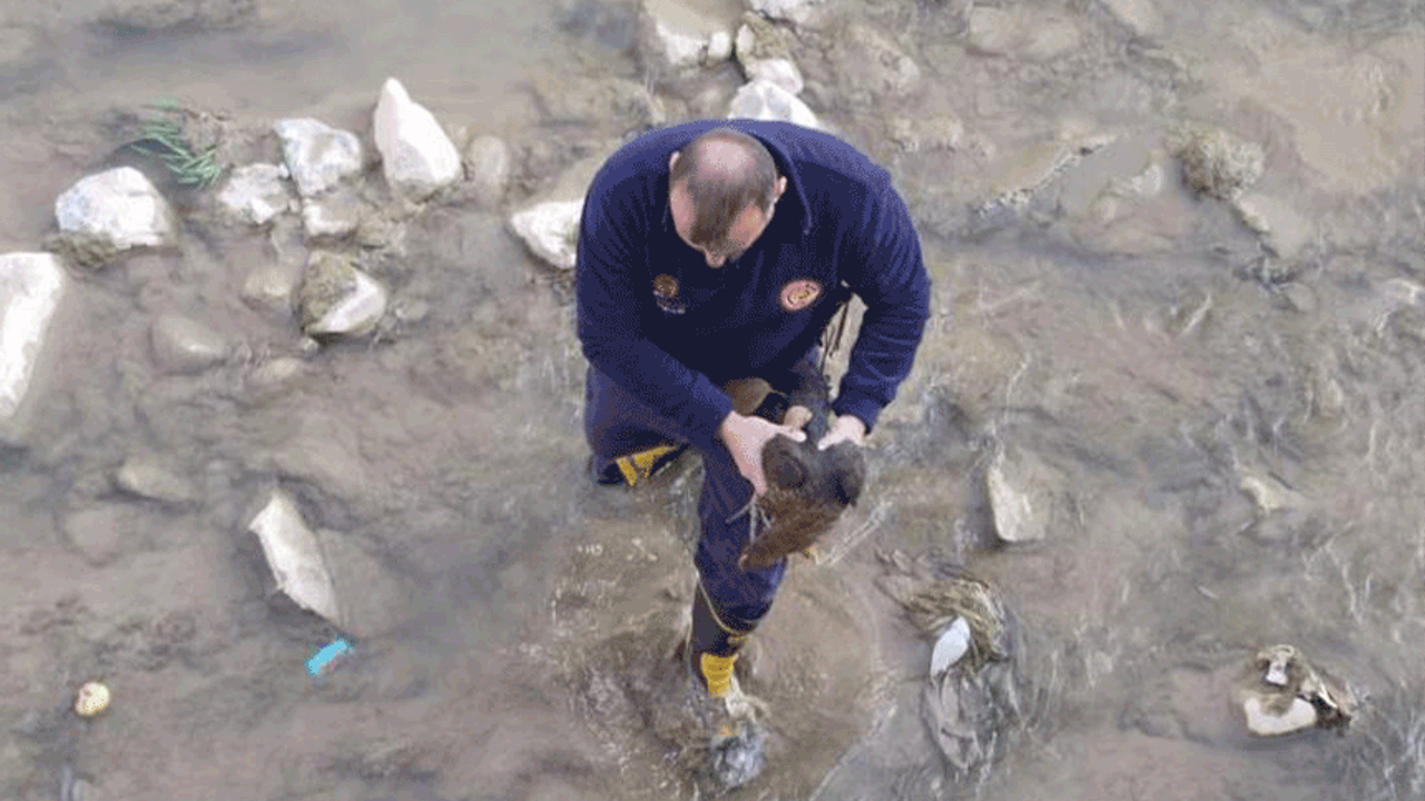 Gümüşhane Karşıyaka Mahallesi'nde Harşit Çayı’na düşen ve bulunduğu yerden çıkamayan tavuğu gören vatandaşlar durumu itfaiyeye bildirdi. İhbar üzerine kısa sürede bölgeye gelen Gümüşhane Belediyesi itfaiye ekiplerinden Mustafa Soydaş, merdiven yardımıyla çaya inerek tavuğu bulunduğu yerden aldı. Kurtarılan tavuk daha sonra sahibine teslim edildi.