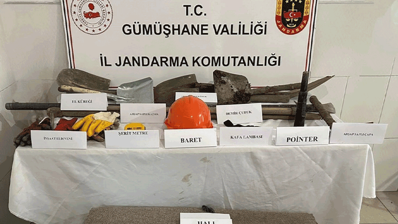 Edinilen bilgiye göre, Gümüşhane İl Jandarma Komutanlığı Kaçakçılık ve Organize Suçlarla Mücadele Şube Müdürlüğü (KOM) ile Torul İlçe Jandarma Komutanlığı ekipleri, Atalar köyünde 4 şüphelinin izinsiz kazı yaptığı bilgisine ulaştı. Bölgeye yapılan operasyonda C.H., O.İ., S.Ş. ve A.Ü. isimli şahıslar 1 adet alan tarama cihazı, 2 adet kazma, 3 adet kürek, 2 adet demir çubuk, 1 adet ahşap saplı çapa, 2 adet el küreği, 3 çift inşaat eldiveni, 1 adet kafa lambası, 4 adet kova, 1 adet baret, 4 adet kum çuvalı, 3 metre halı ve 8 metrelik şerit metreyle birlikte suçüstü yakalandı.