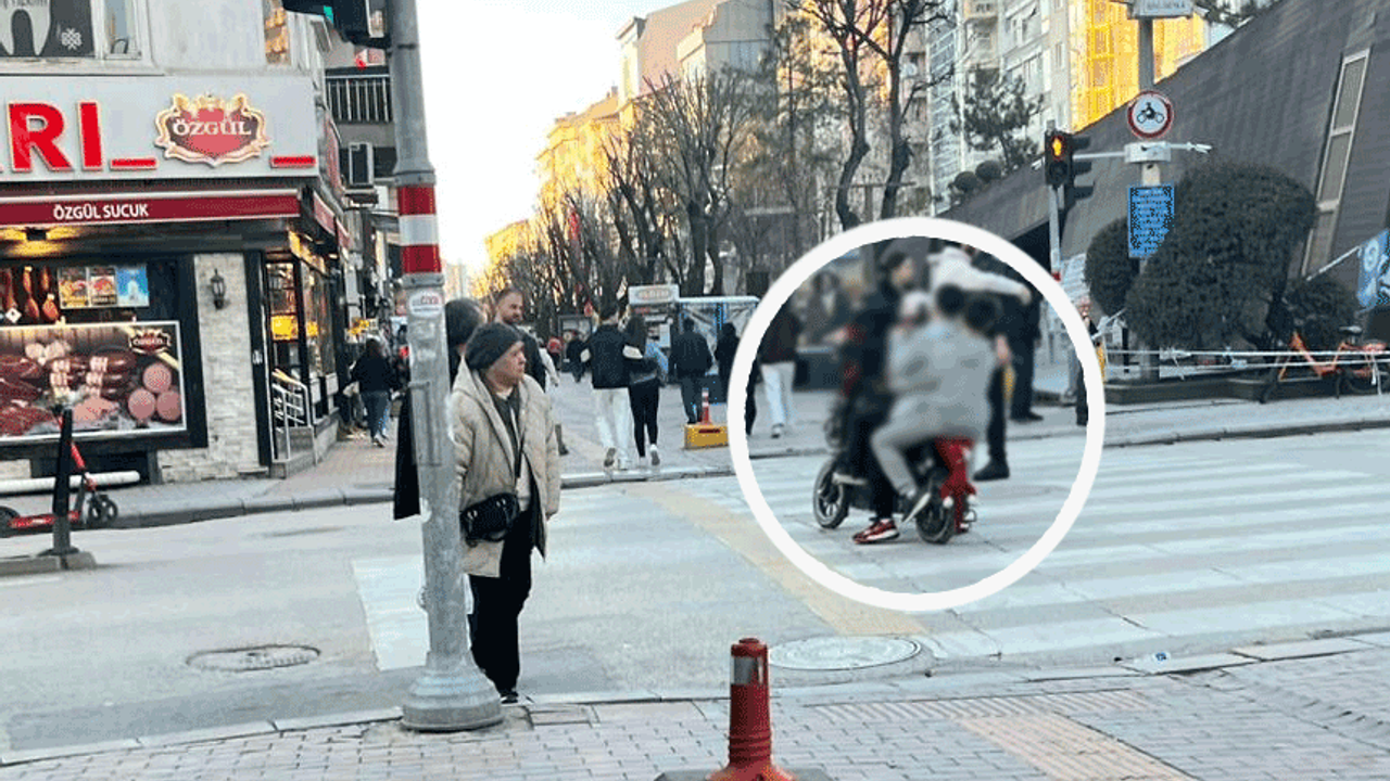 Üç çocuğun tek bir elektrikli bisiklete binerek ilerlediği anlar, olası bir kazaya davetiye çıkardı.
