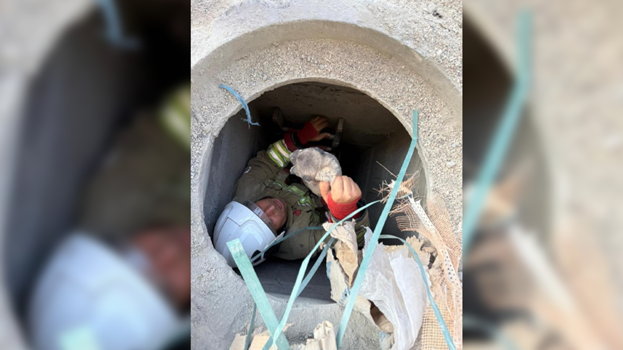 Antakya ilçesi Altınçay Mahallesi’nde şantiye alanında bulunan 5 metre derinliğindeki gider borusuna yavru köpek düştü. İhbar üzerine bölgeye itfaiye ekibi sevk edildi. Yavru köpek, ekiplerimizin titiz çalışmasıyla sağlıklı bir şekilde kurtarıldı.