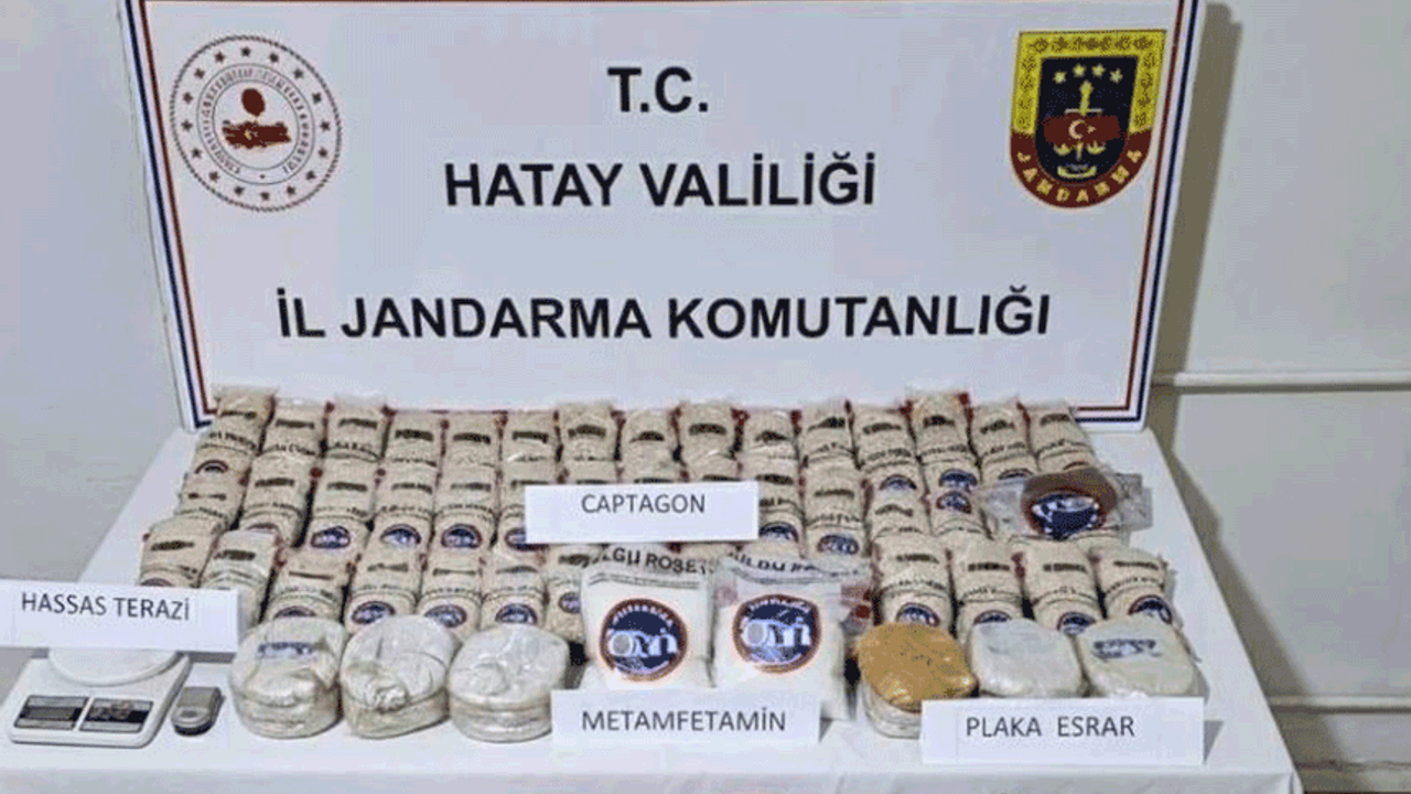 Hatay İl Jandarma Komutanlığı Narkotik Suçlarla Mücadele Şube Müdürlüğü, Reyhanlı İlçe Jandarma Komutanlığı, JASAT Timi ve Merkez Karakol Komutanlığı ekiplerince Göktepe Mahallesi'nde yürütülen takipli narkotik faaliyeti çalışmasında, kamuya ait sulama kanalı ve sazlık alanda uyuşturucu madde saklandığı bilgisi üzerine belirlenen alanda arama yapıldı. Yapılan aramada; 100 bin adet Captagon hap, 1 kilo 600 gram metamfetamin, 5 kilo 126 gram plaka esrar ele geçirildi.