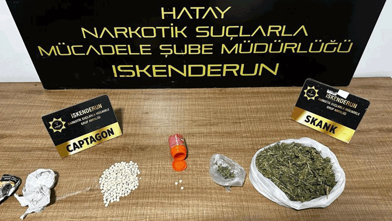 İl Emniyet Müdürlüğü görevlilerince uyuşturucu imal ve ticaretine yönelik çalışmalarını sürdürüyor. İskenderun ilçesinde A.Y. isimli şahsın Meydan Mahallesindeki konteynerinde yapılan aramada;2 parça halinde daralı 34 gram uyuşturucu metamfetamin maddesi, M.O. isimli şahsın Moderen Evler mahallesindeki ikametinde ve aracındaki aramada; 2 parça halinde daralı 185 gram Esrar, 283 Adet Captagon ele geçirildi.