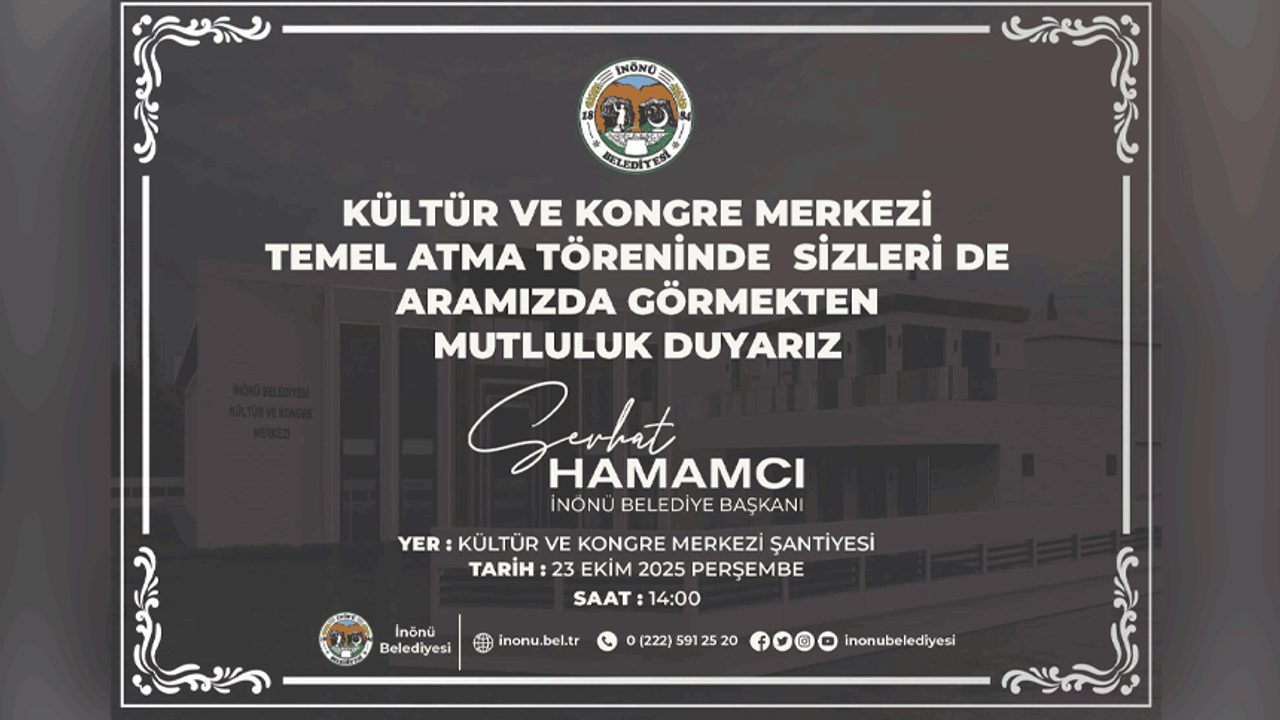 İnönü Belediye Başkanı Serhat Hamamcı'nın öncülüğünde gerçekleşecek olan tören, 23 Ekim 2025 Perşembe günü saat 14:00 ‘da Kültür ve Kongre Merkezi Şantiyesinde gerçekleşecek.