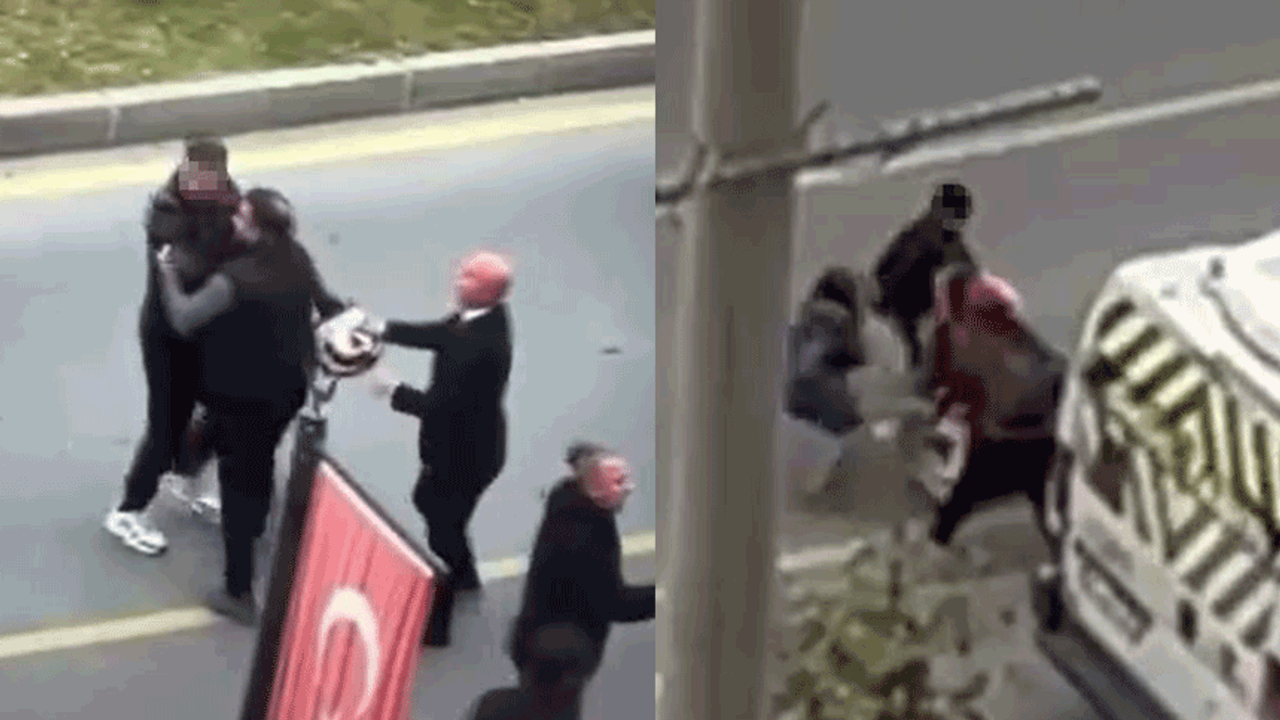 Kavga sırasında, hafif ticari araç sürücüsü, motosikletli babaya yanında bulunan küçük çocuğun gözleri önünde saldırdı. Taraflar birbirlerine tekme, yumruk ve kaskla vururken, çevredeki vatandaşlar kavgayı ayırmakta güçlük çekti. Yaşanan kavga anları, olay yerinde bulunan bir vatandaş tarafından cep telefonu kamerasıyla saniye saniye kaydedildi.