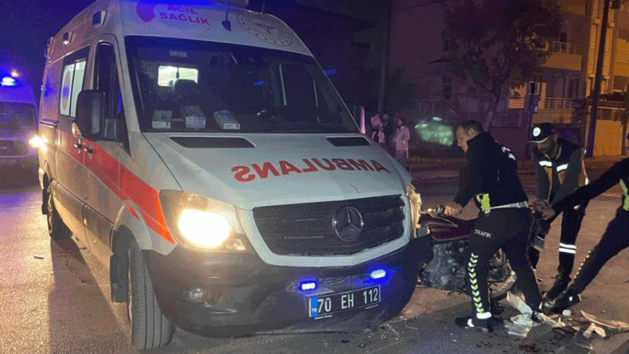 Kaza, akşam saat 19.00 sıralarında İmaret Mahallesi Behçet Kemal Çağlar Caddesi üzerinde bulunan kavşakta meydana geldi. Edinilen bilgiye göre, kazada yaralanan bir şahsı hastaneye götürdüğü öğrenilen A.T. idaresindeki 70 EH 112 plakalı ambulans, kavşakta U.P.’nin kullandığı 70 AL 728 plakalı motosikletle çarpıştı. Kazada motosiklet ambulansın ön tamponu ile teker arasına ok gibi saplanırken, yola savrulan motosiklet sürücüsü yaralandı. Yaşanan kazada yaralanan motosiklet sürücüsü ile ambulansta bulunan diğer yaralı çağrılan başka ambulanslarla kaldırıldıkları Karaman Eğitim ve Araştırma Hastanesi’nde tedavi altına alındı. Ambulansa ok gibi saplanan motosiklet ise polis ekiplerince saplandığı yerden güçlükle çıkarılarak otoparka çekildi.