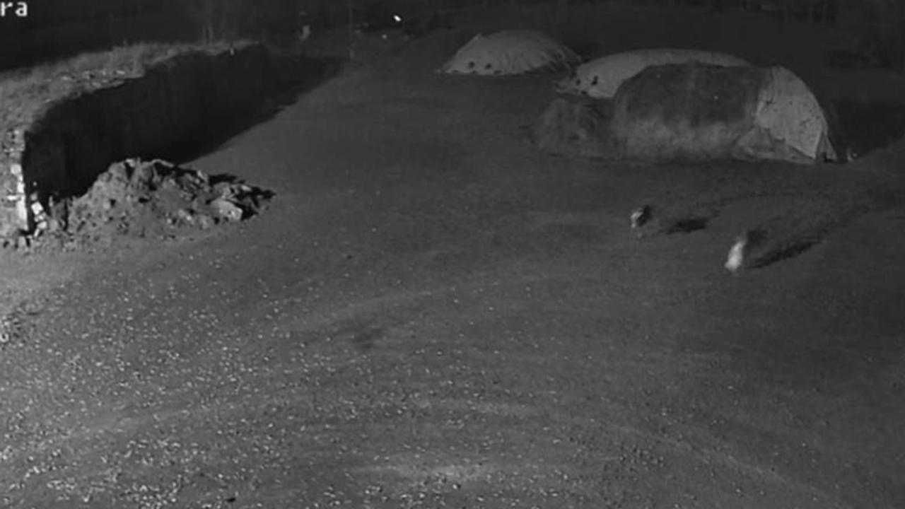 Görüntülerde, 2 kurdun sessiz ve hızlıca alana yaklaştığı, kısa süre sonra da köpeği kaparak götürmesi yer alıyor. Köpek ağzında hızlıca koşan kurtlar gecenin karanlığında kayboldu.