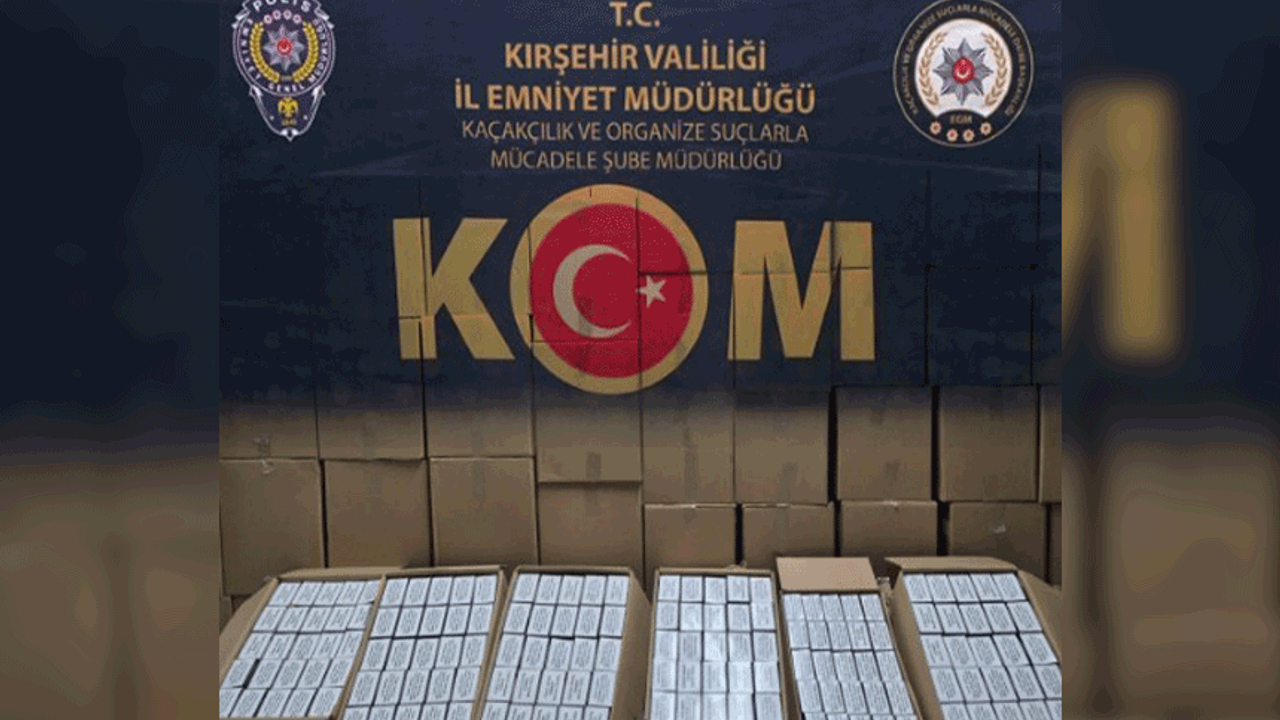 Edinilen bilgiye göre Kırşehir İl Emniyet Müdürlüğü KOM Şube Müdürlüğü ekipleri koordineli yürütülen saha ve analiz çalışmaları sonucu kapalı kasa bir panelvan araçta arama yaptı. Aramada, 100 koli halinde toplam 1 milyon adet makaron ele geçirildi. Olayla ilgili şüpheli E.B. hakkında 5607 sayılı Kaçakçılıkla Mücadele Kanunu'na muhalefet suçundan işlem başlatıldı.