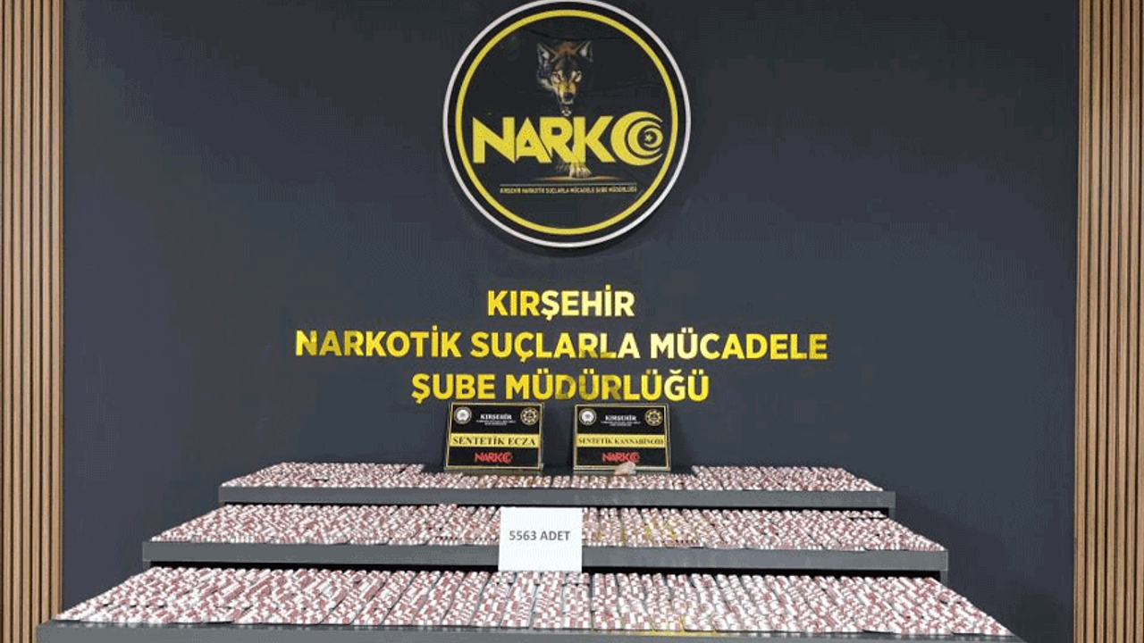 Kırşehir İl Emniyet Müdürlüğü Narkotik Suçlarla Mücadele ve İstihbarat Şube Müdürlüklerince yürütülen çalışmalar çerçevesinde, Kırşehir-Ortaköy yolu üzerinde şüphe üzerine bir araç durduruldu. Durdurulan araçta arama yapıldı. Yapılan kontrollerde; 5 bin 563 adet sentetik hap ile 44 gram sentetik uyuşturucu hammaddesi ele geçirildi.