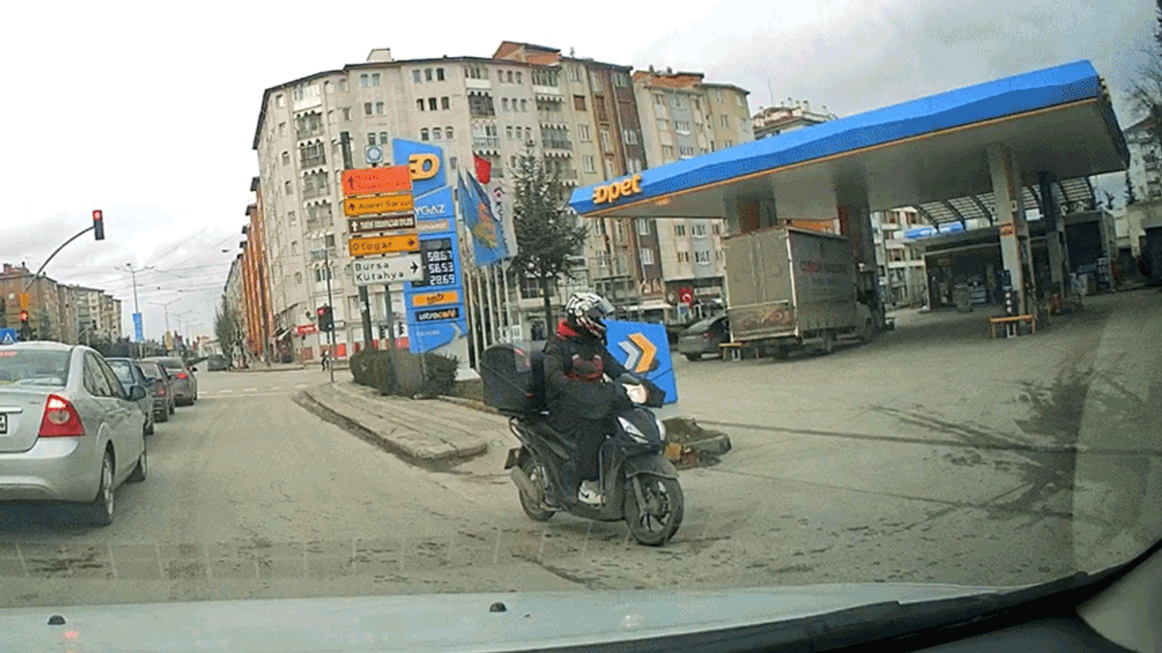 Olay, Yenidoğan Mahallesi Cumhuriyet Bulvarı üzerindeki Yunuskent tramvay durağı mevkisinde yaşandı. Bir motosikletli kurye, trafik akışının aksine ters yöne girdi. Yolun ters istikametinde ilerleyerek hem kendi canını hem de diğer sürücüleri tehlikeye atan kurye, bir süre bu şekilde seyretti. Trafik güvenliğinin hiçe sayıldığı o anlar ise çevredeki bir araç kamerası tarafından görüntülendi.