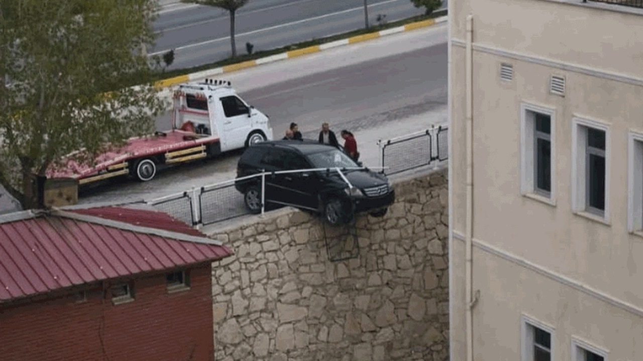 Kaza, Malatya'nın ilçe merkezi Somuncubaba Bulvarı'nda meydana geldi. Edinilen bilgilere göre, sürücüsünün kontrolünden çıkan araç yol kenarındaki istinat duvarına çarparak asılı kaldı. Korkulukların bulunması muhtemel bir faciayı önlerken, aracın yaklaşık 15 metre aşağıya düşmekten son anda kurtulduğu belirtildi.