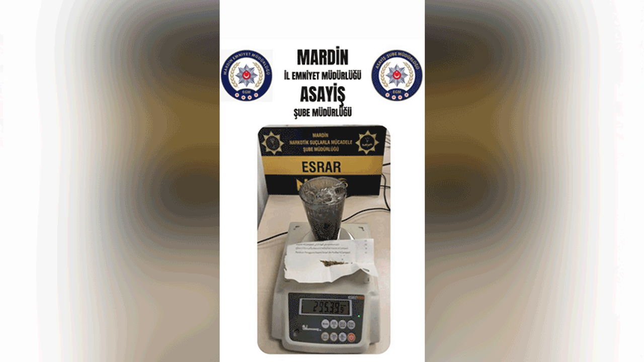 İl Emniyet Müdürlüğünden yapılan açıklamada, polis ekiplerince Mardin Artuklu ilçesinde uyuşturucu ticareti ve kullanımının önlenmesine yönelik operasyon düzenlendi. Operasyonda 295,39 gram esrar ele geçirildi. Operasyonda 2 şüpheli şahıs hakkında adli işlem başlatıldı.