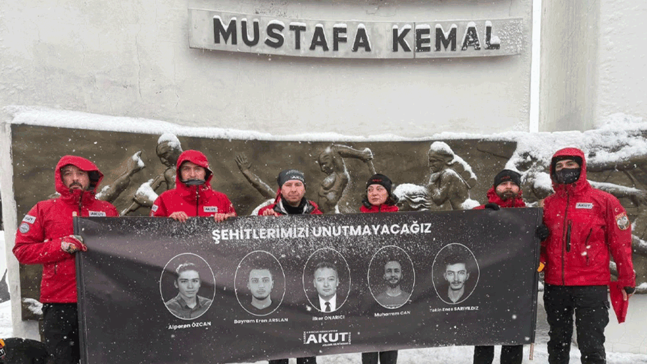Kar yağışı ve dondurucu soğuğa aldırış etmeyen AKUT gönüllüleri, Bozüyük’teki Metristepe Anıtı’na ulaşarak anma töreni gerçekleştirdi. Katılımcılar, üzerinde "Şehitlerimizi Unutmayacağız" yazılı ve şehitlerimizin fotoğraflarının bulunduğu bir pankart açarak, kahramanlarımızı saygıyla andı.