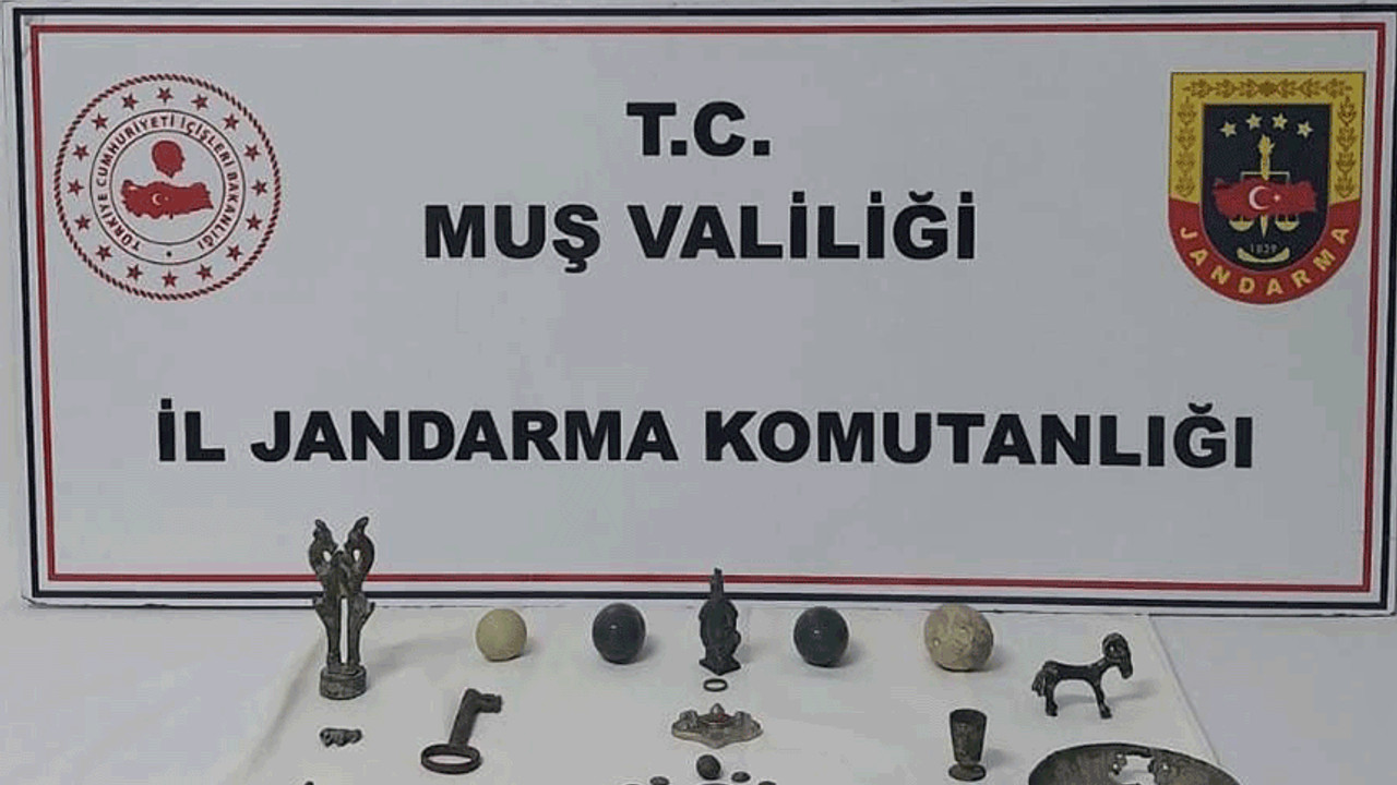 Edinilen bilgilere göre, Muş İl Jandarma Komutanlığı’na bağlı KOM ve İstihbarat Şube Müdürlüğü ekiplerinin yürüttüğü istihbari çalışmalar sonucunda N.T. isimli şahsın ikametinde tarihi eser bulunduğu yönünde bilgi elde edildi. Cumhuriyet Savcılığından alınan arama kararına istinaden yapılan operasyonda, Roma dönemine ait 25 sikke ile Urartu dönemine ait heykel, mızrak ucu, kupa ve kase gibi 18 obje bulundu. Ayrıca ikamette iki adet alan tarama çubuğu da ele geçirildi. Ele geçirilen tarihi nitelikteki sikke ve objeler, Muş Müze Müdürlüğü’ne teslim edilmek üzere muhafaza altına alınırken, şüpheli N.T. gözaltına alındı. Olayla ilgili soruşturma başlatıldı.