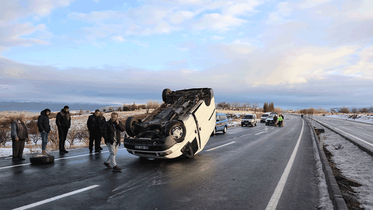 Kaza sabah saatlerinde Nevşehir Ürgüp Karayolu, İprahimpaşa kavşağı yakınlarında meydana geldi. Edinilen bilgiye göre, yağışlı ve buzlu yolda kontrolden çıkan Fatih T.’nin kullandığı 50 AFV 479 minibüs, önce orta refüje düştü. Daha sonrada takla atarak karşı şeride geçti. Kazayı gören vatandaşların ihbarı üzerine kaza yerine sağlık, polis ve jandarma ekipleri sevk edildi. Kazada yaralanan sürücü, Ürgüp Devlet Hastanesine kaldırılırken, kazayla ilgili soruşturma başlatıldı.