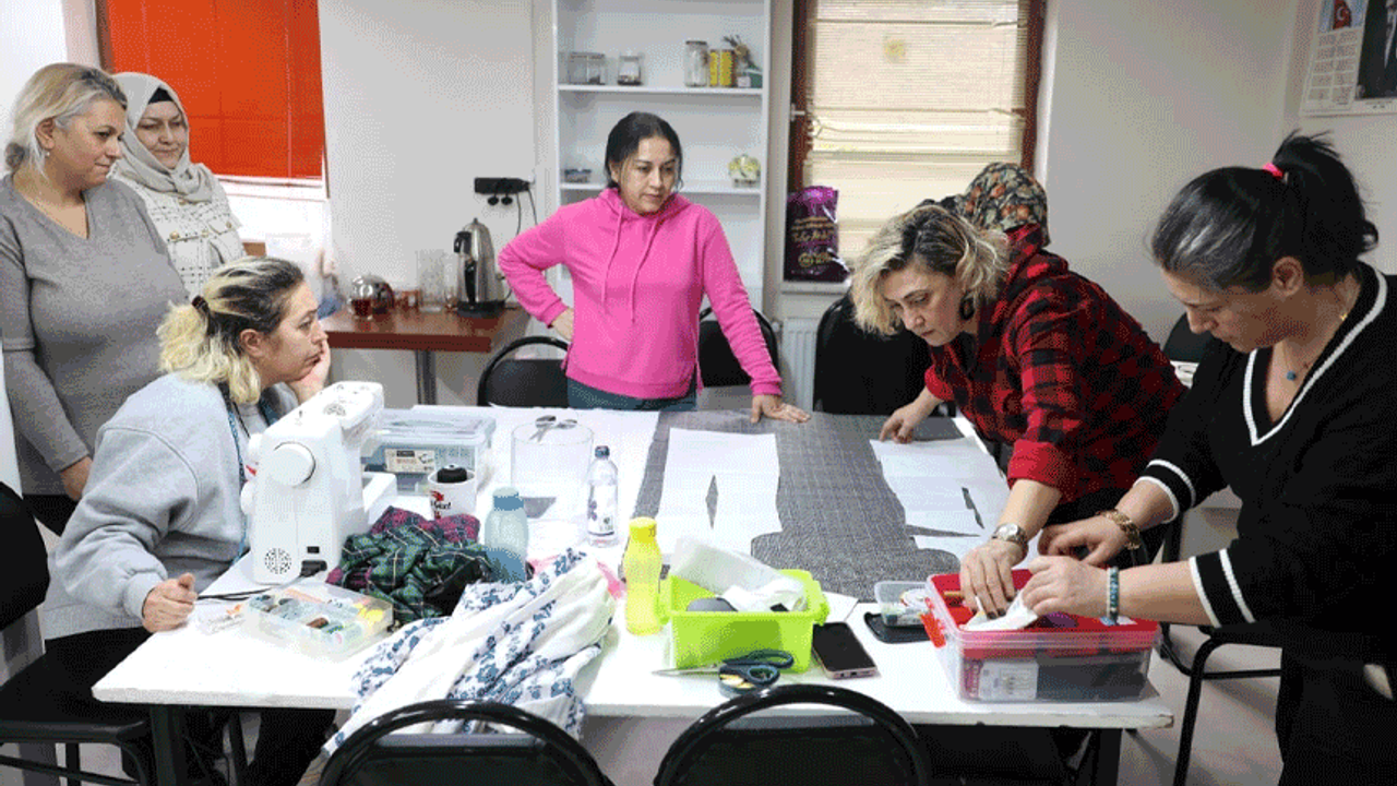 Tamamı kadınların katılımıyla hayata geçirilen atölye, iki grup halinde yürütülüyor. Çarşamba günleri yapılan birinci grupta 15 kadın, perşembe günleri düzenlenen ikinci grupta ise 16 kadın eğitim alıyor. Atölye süresince kadınlar giyim alanında mesleki beceriler edinerek üretim süreçlerine katılıyor.