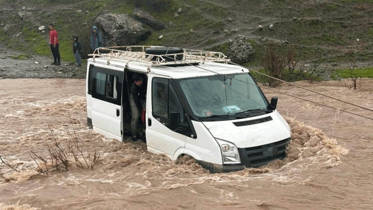 Siirt’in Baykan ilçesinde kalp krizi geçiren Naime Gölbaşı, hastaneye götürülürken aşırı yağış nedeniyle taşan derede mahsur kaldı. Veysel Karani beldesine bağlı Meşelik köyünden minibüsle yola çıkan vatandaşlar, dere taşkını nedeniyle araçla birlikte suların ortasında kaldı.
