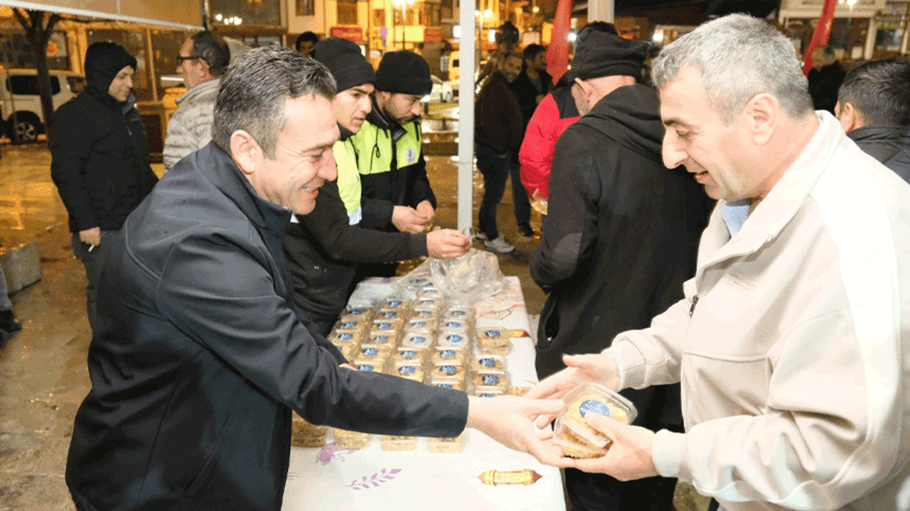 Sivrihisar Belediyesi, Berat Kandili dolayısıyla ilçenin Ulu Camii’nde yatsı namazı çıkışında hemşehrilerine helva ikramında bulundu. Bu mübarek gecenin birlik, beraberlik ve paylaşma duygularını pekiştirmesini dileyerek tüm vatandaşların Berat Kandili’ni kutladı.