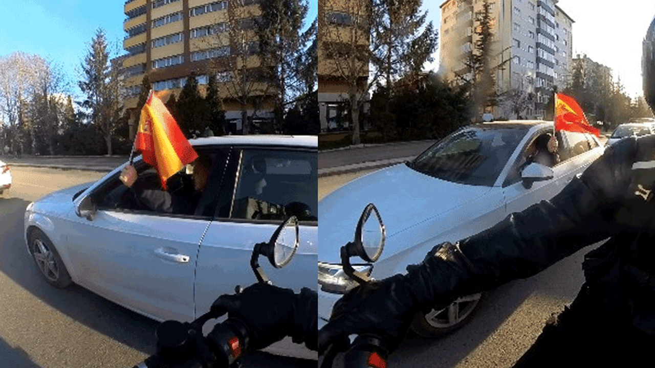 İspanya, son günlerdeki savaş karşıtı tutumu ile gündeme gelmiş; Türk vatandaşlarının sosyal medyadan destek vermesi sonrası 2 ülkenin arasında dijital bir kardeşlik bağının temelleri atılmıştı. Sosyal platformlarda karşılıklı paylaşımlar sürerken, Eskişehir'de bir sürücü İspanya ve Türk bayrakları ile trafiğe çıktı. Elindeki bayrakları aracının camından sallayarak dolaşan sürücü, Vişnelik Mahallesi Atatürk Bulvarı'nda bir motosikletlinin kask kamerasına yansıdı. Sosyal medyada paylaşılan görüntü yoğun ilgi gördü.