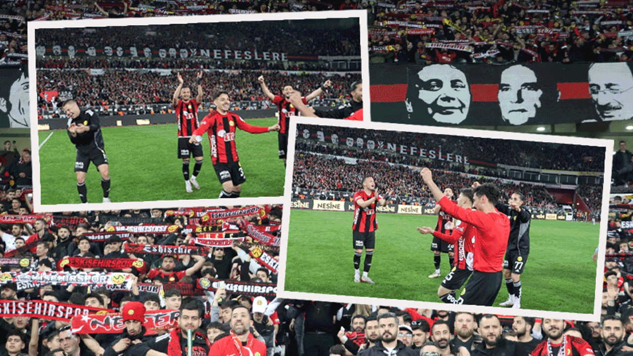 Hakemin son düdüğü çalmasıyla birlikte tribünleri dolduran binlerce taraftar büyük sevinç yaşarken, saha içerisindeki kutlamalar renkli görüntülere sahne oldu. Galibiyetin ve tur atlamanın sevincini yaşayan Eskişehirsporlu futbolcular, hep beraber saha ortasında toplanarak çiftetelli oynadı. Futbolcuların bu neşeli kutlamasına tribünler de alkışlarla eşlik etti.