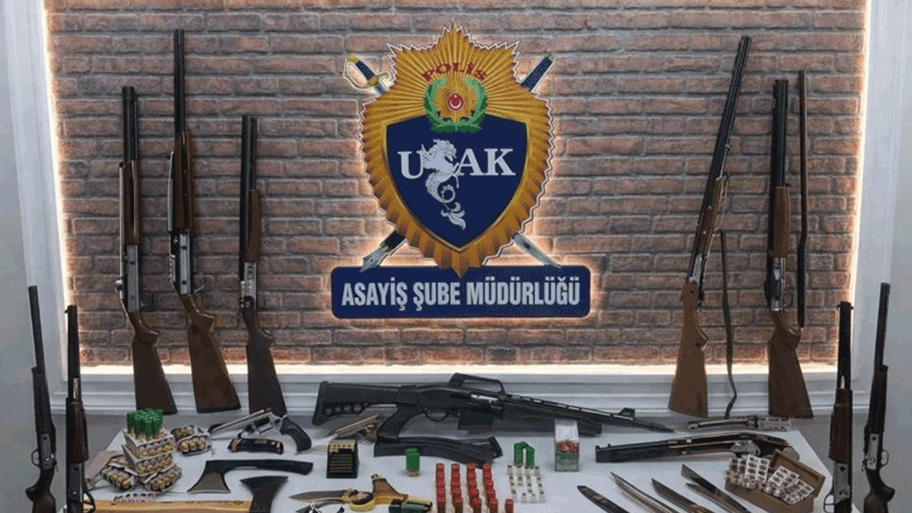 Uşak İl Emniyet Müdürlüğü'ne bağlı Asayiş Şube Müdürlüğü ekiplerince, edinilen bilgiler çerçevesinde, Fevzi Çakmak Mahallesi'nde bulunan Galericiler Sitesi'nde faaliyet gösteren iş yerlerine yönelik denetim gerçekleştirildi. İş yerlerinde yapılan aramalarda 13 adet ruhsatsız av tüfeği ve 218 adet av fişeği, 5 adet kurusıkı tabanca ve 17 adet kurusıkı tabanca fişeği, 1 adet 7.65 çapında tabanca ve 374 adet 9 mm çapında fişek, 1 adet tabanca sürgü takımı, 60 adet sentetik ecza ile 13 adet kesici alet ele geçirildi.