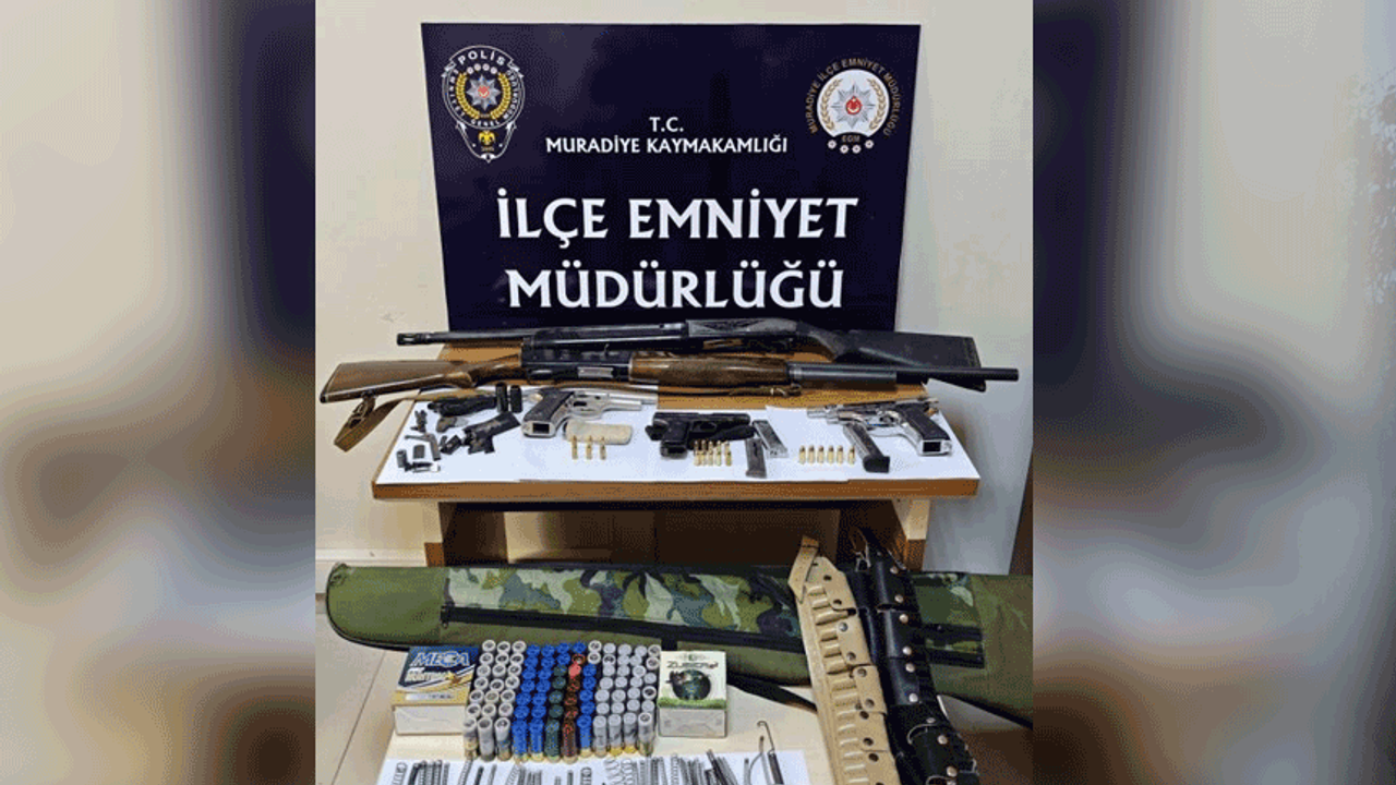 Van Muradiye ilçesi Kandahar Mahallesi’nde, Muradiye Sulh Ceza Hâkimliğinin arama ve el koyma kararı doğrultusunda Muradiye İlçe Emniyet Müdürlüğü ekipleri tarafından operasyon gerçekleştirildi. Operasyon kapsamında yapılan aramalarda; 2 adet yivsiz av tüfeği, 83 adet dolu av tüfeği kartuşu, 3 adet tabanca, 22 adet dolu tabanca fişeği ve tabanca yapımında kullanılan çeşitli parçalar ele geçirildi. Operasyon kapsamında M.M.K. isimli şüpheli gözaltına alındı. Konuya ilişkin adli ve idari işlemlerin başlatıldığı belirtildi.